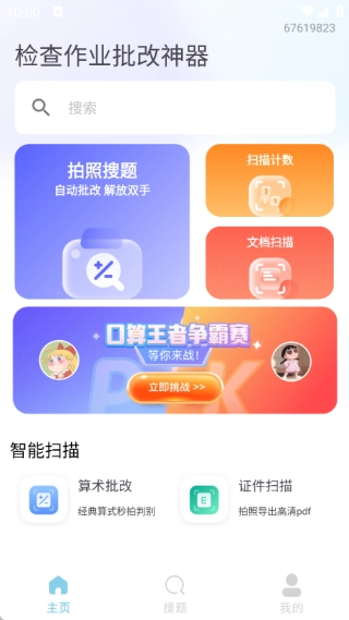 主页配备了拍照搜题、扫描计数、文档扫描、智能扫描等实用功能。