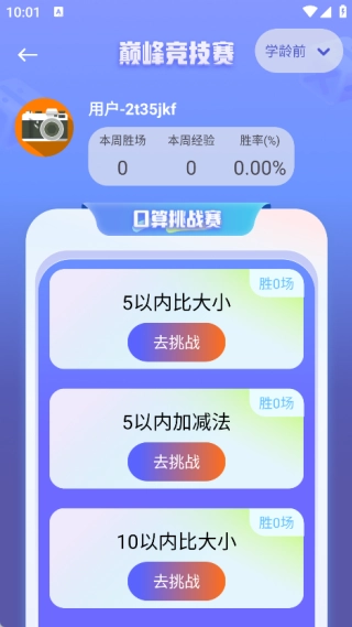 2、在巅峰竞技赛里,你可以随时发起口算挑战,瞧瞧自己的胜利次数有多少。