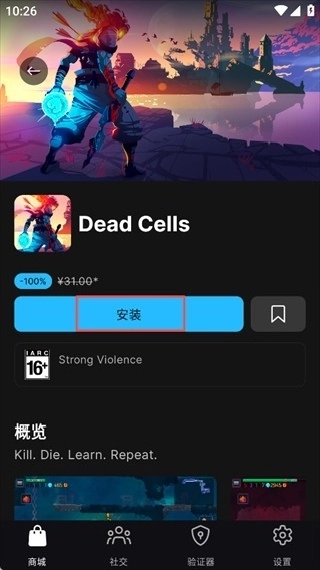 2.点击进入感兴趣的免费游戏详情页面后点击“安装”选项。