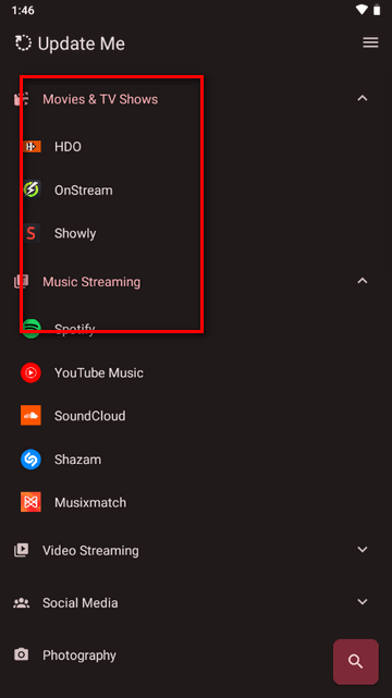 Update Me 是专为安卓手机用户设计的应用商店,这里汇聚了丰富多样的应用资源,涵盖小说、影视、漫画等各类别,所有资源均免费提供,下载速度快,并且每天持续更新新的软件资源,能够满足你对各类资源的需求。