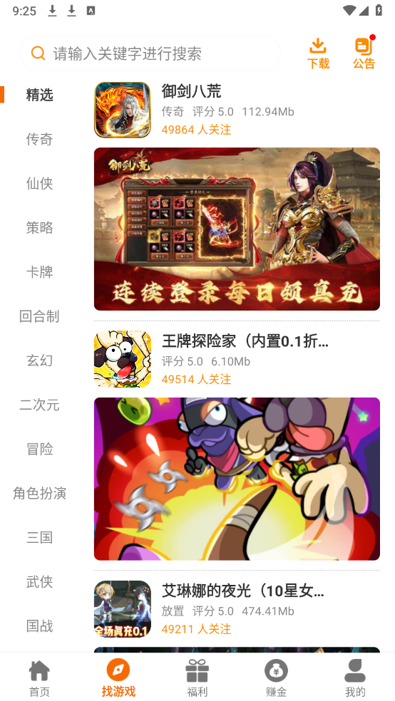 在首页和“找游戏”板块,平台为玩家准备了仙侠、射击、三国武侠等各类丰富的游戏资源。