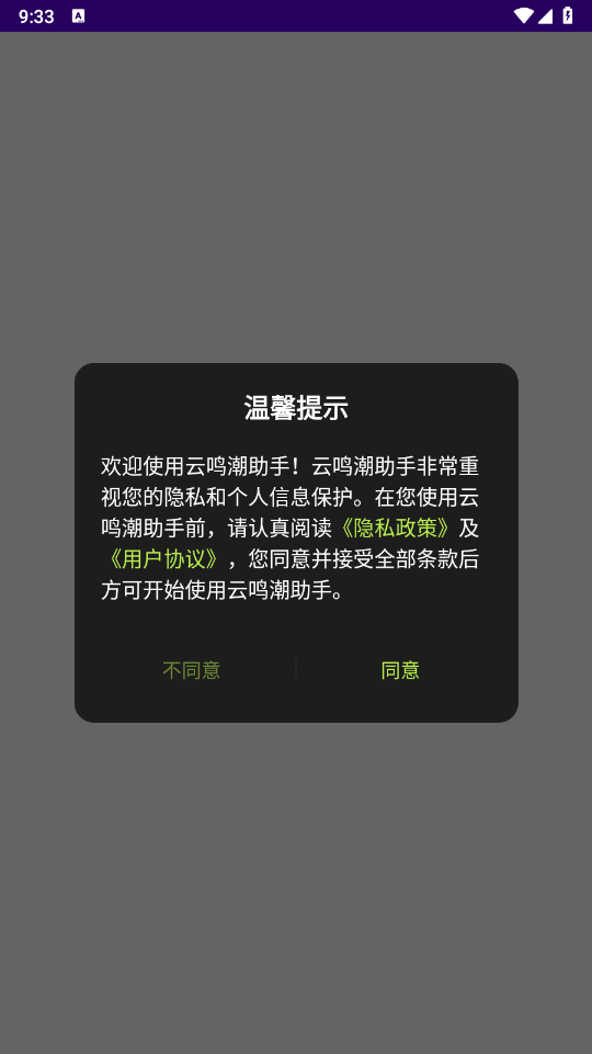 安装云鸣潮助手,同意相关的政策与协议之后打开。