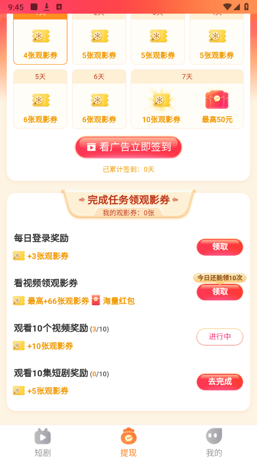 这个优质的短剧平台很值得尝试!每天刷短剧不仅能拿到对应的红包奖励,还能获得观影券呢。