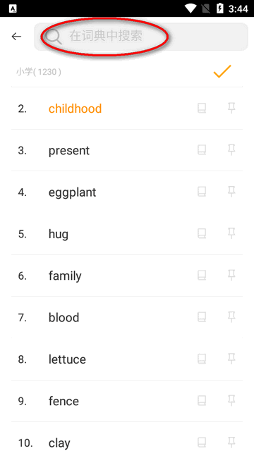 可以通过搜索框进行查找单词。