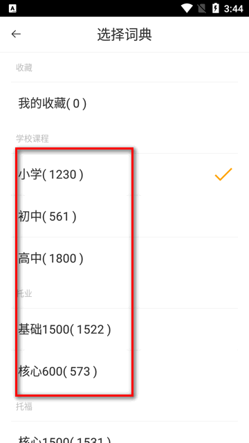 选择相应的英语学习阶段,包括小学、初中以及高中。