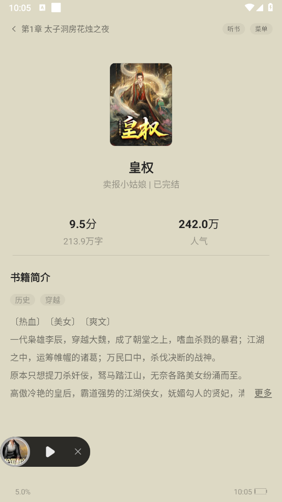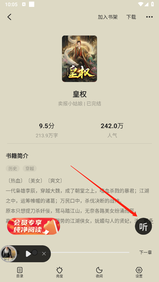 点击屏幕中间位置可以对阅读页面进行各种设置。