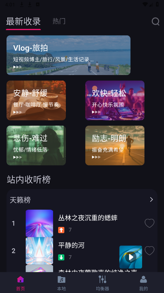 热歌榜实时更新,众多网红歌手推出的新歌或翻唱作品都能在此找到,所有内容均可免费收听。