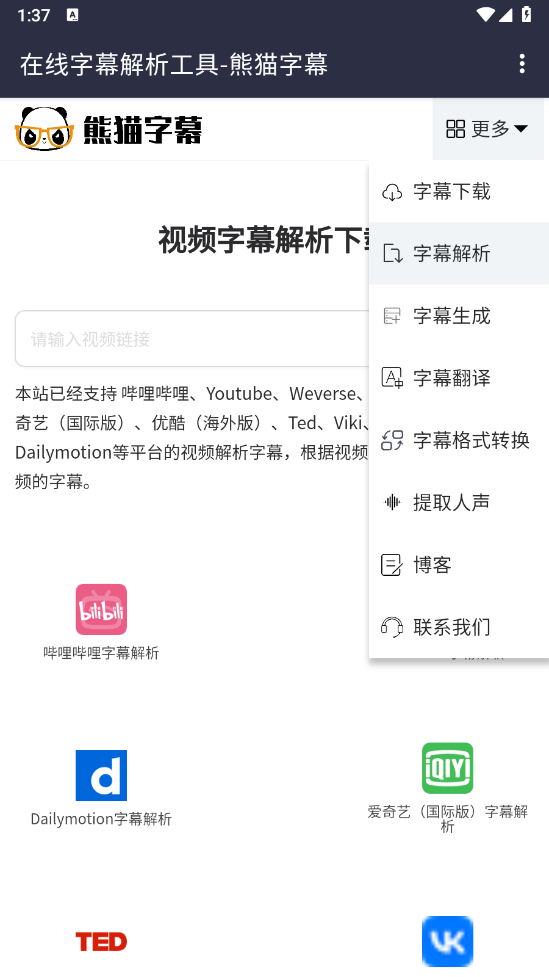 进入后,点击“更多”选项,(该选项)包含字幕、字幕解析、字幕生成和翻译等功能。