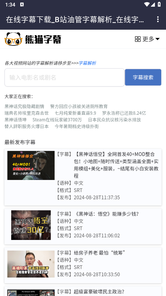 例如小编挑选的字幕,可在搜索框里输入电影名称或者电视剧名称。