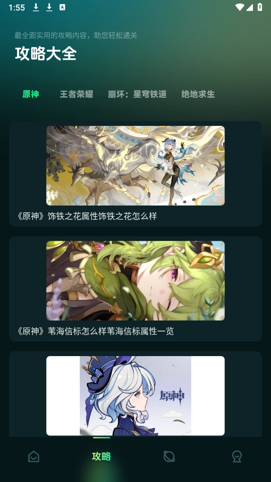 进入首页和攻略板块,能看到各式各样的游戏攻略类型。