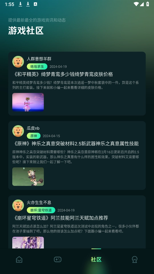 进入“社区”栏目后,既能发布优质攻略,也能浏览其他用户分享的内容。