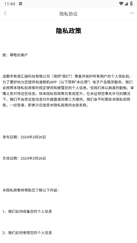 有道租机是个值得信赖的电子产品租赁平台,涵盖手机、耳机、电脑、平板、手表等多种品类,能满足各类用户的租赁需求。平台制定了详细的租借规则与注意事项,提供不同品牌和型号的电子产品选择,非常适合有短期使用需求的用户。