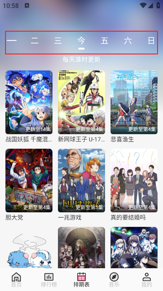 “排期表”会展示每日动漫的更新动态,方便大家随时掌握自己喜爱动漫的更新进度。