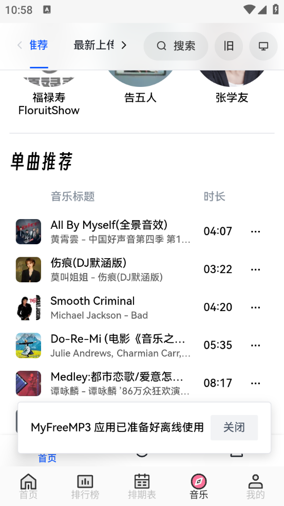 还有一个音乐板块,在这里及时发现优质的音乐吧。