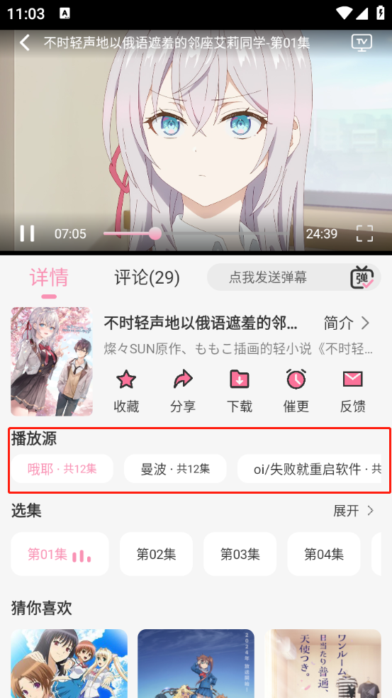 如果出现卡顿或者集数不全的现象可以进行换源播放。