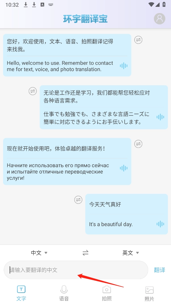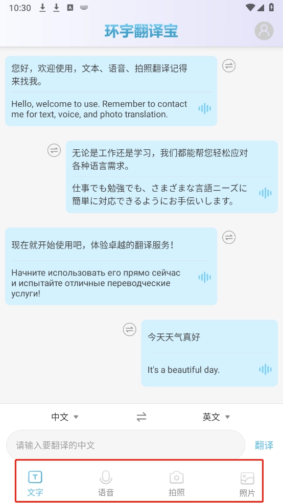 支持文字、语音输入翻译,还能通过实时拍照、图片识别等方式完成翻译。