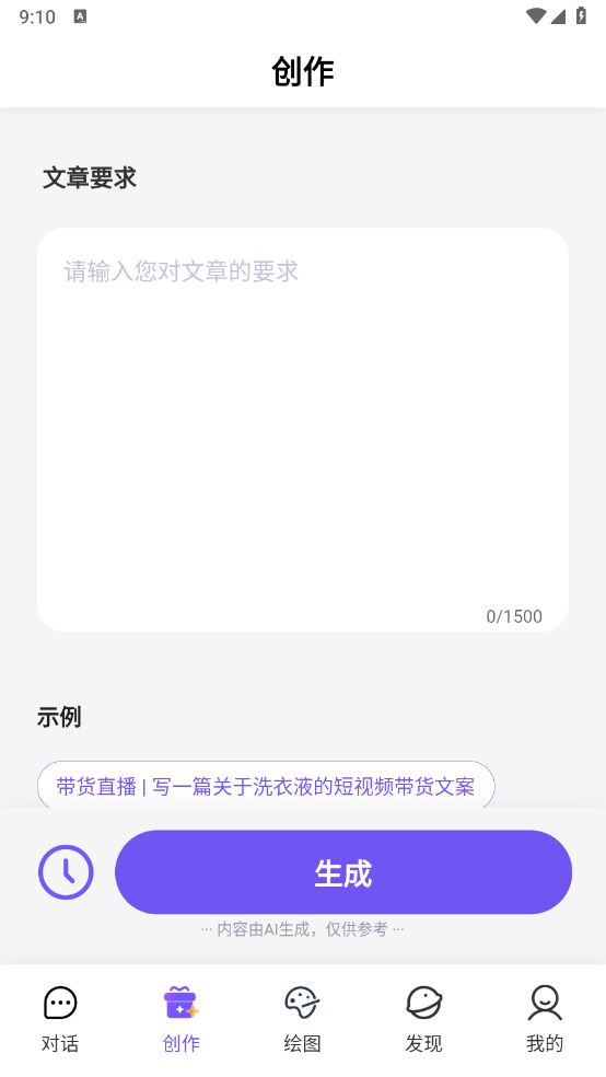 无论是撰写作文、进行广告策划,还是开展活动策划,只需输入关键词,就能生成你所需要的内容。