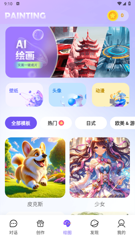 绘画栏目能够生成高质量的内容,无论是壁纸、头像这类实用图像,还是各类风格的绘画创作都能轻松实现。