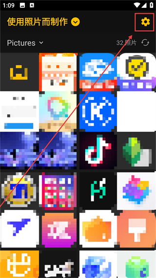 1、在照片制作页面点击右上角的【设置】按钮,就能进入功能配置页面,调整视频相关的参数啦。