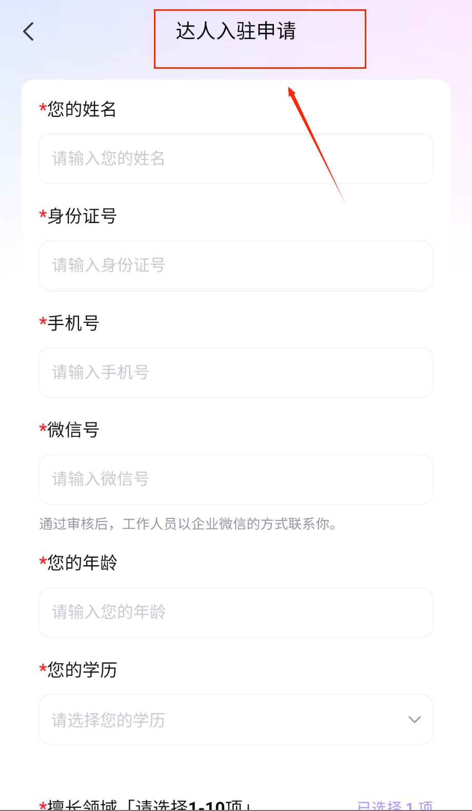 3、基础信息部分需要填写姓名、身份证号、手机号等必填内容,年龄和学历栏需如实填写,擅长领域部分最多可选择10个项目。