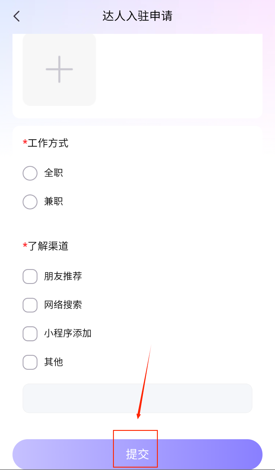2、在"工作方式"处根据实际情况选择全职或兼职选项,然后在"了解渠道"中勾选朋友推荐、网络搜索等相应选项。