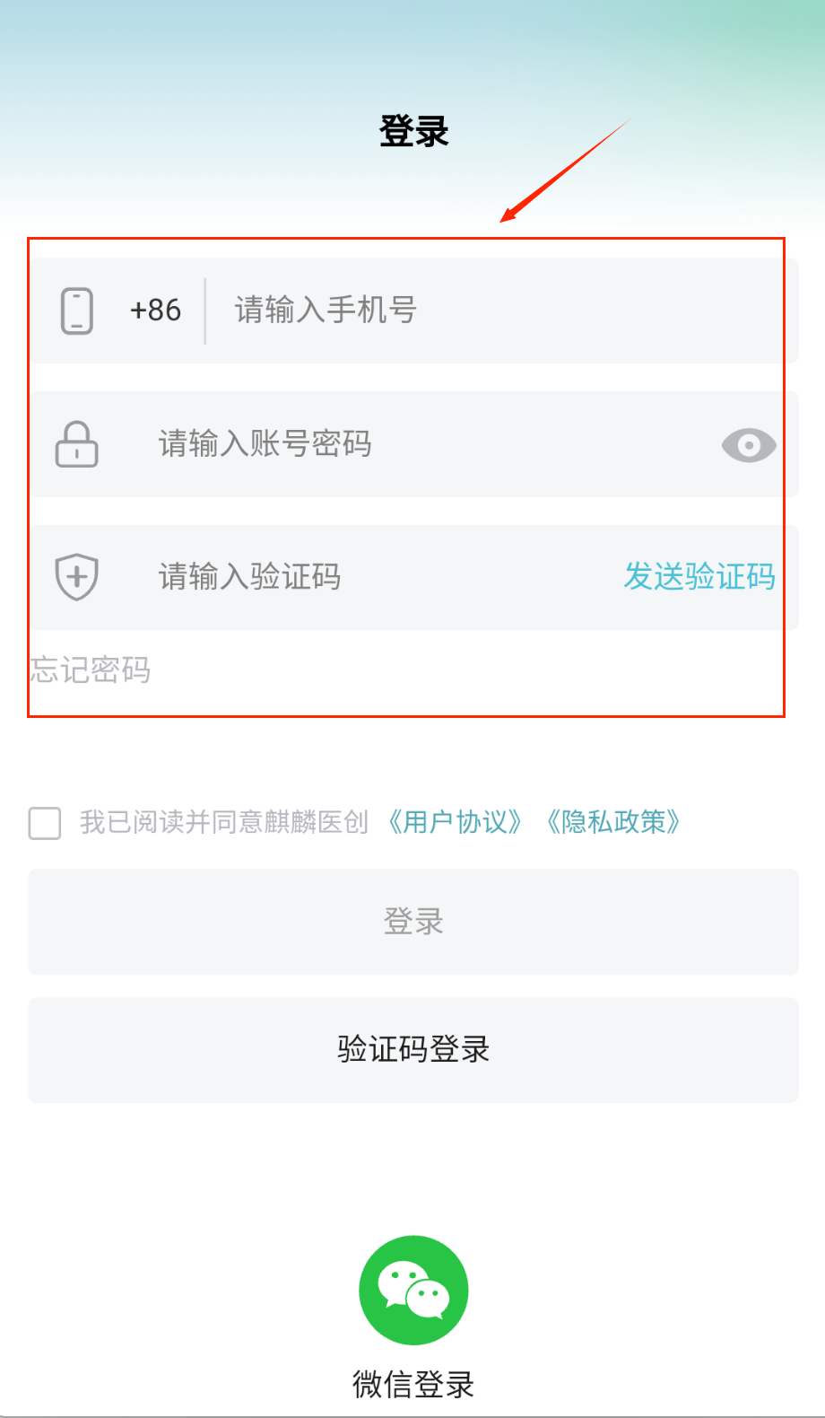 3、要是想用验证码快速登录,可以在登录页面选择验证码登录方式,输入手机号码后点击发送验证码,收到短信验证码后填入输入框。