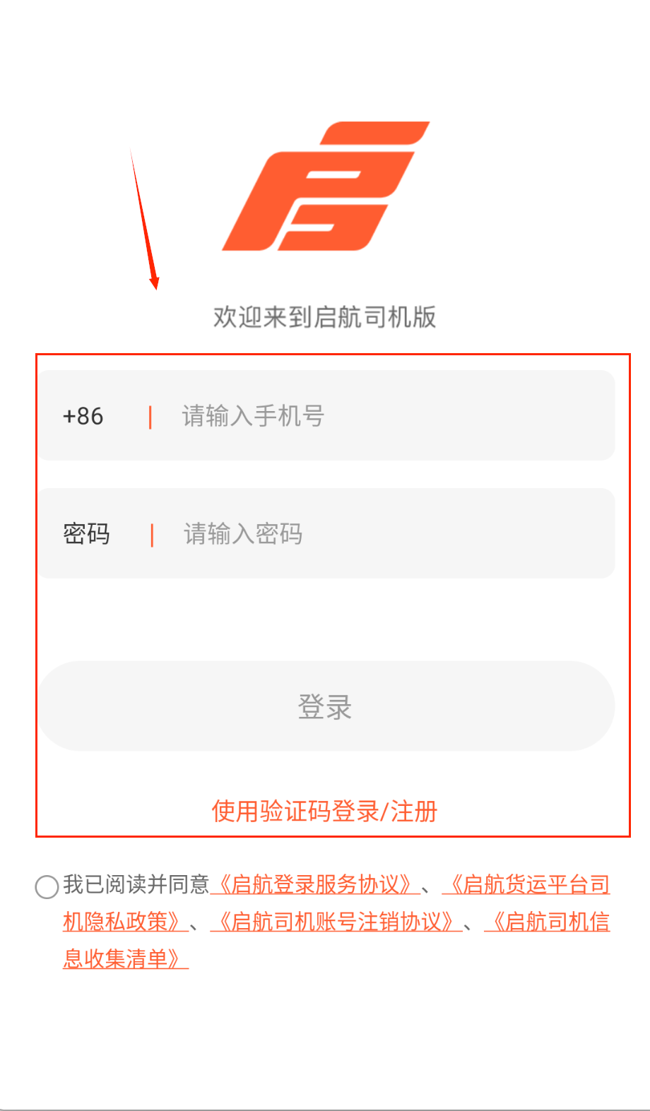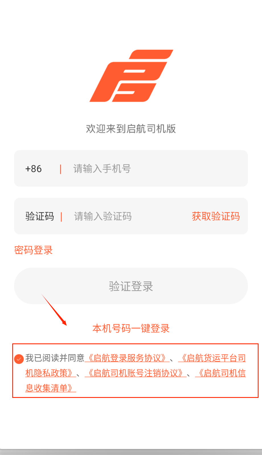 4、 登录前有个重要步骤哟,就是记得勾选界面最下方“我已阅读并同意”后面那一系列协议,包括启航登录服务协议、隐私政策等等。