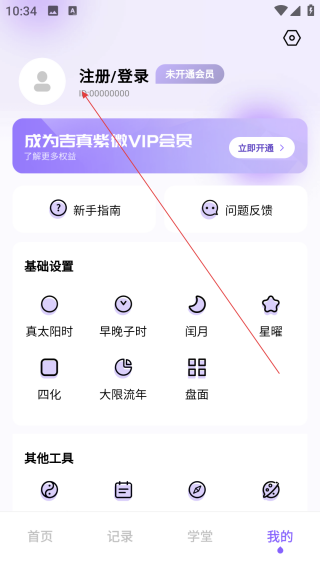 是将中国传统紫微斗数术数理论与现代天文历法数据深度融合的易学辅助排盘工具,旨在为用户提供精准、智能的星盘解读服务,助力探索自我与宇宙的关联。它以古籍技法为核心,结合前沿技术,打造集排盘、分析、存储于一体的综合性平台,无论是易学爱好者还是命理研究者,都能从中获取个性化的命盘洞察,揭开命运走势的神秘面纱。1、打开吉真紫微斗数,点击【我的】。