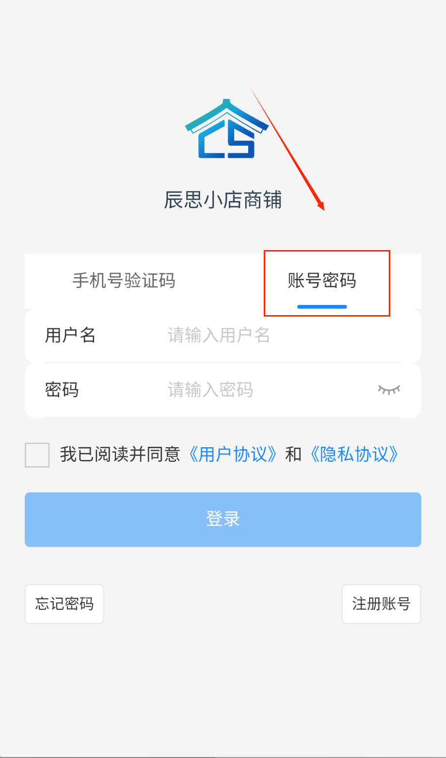 3、要是选账号密码登录的话,输入用户名和密码,那个眼睛图标可以切换密码显示状态,确认信息无误后勾选协议,点击登录能进入系统了呢。