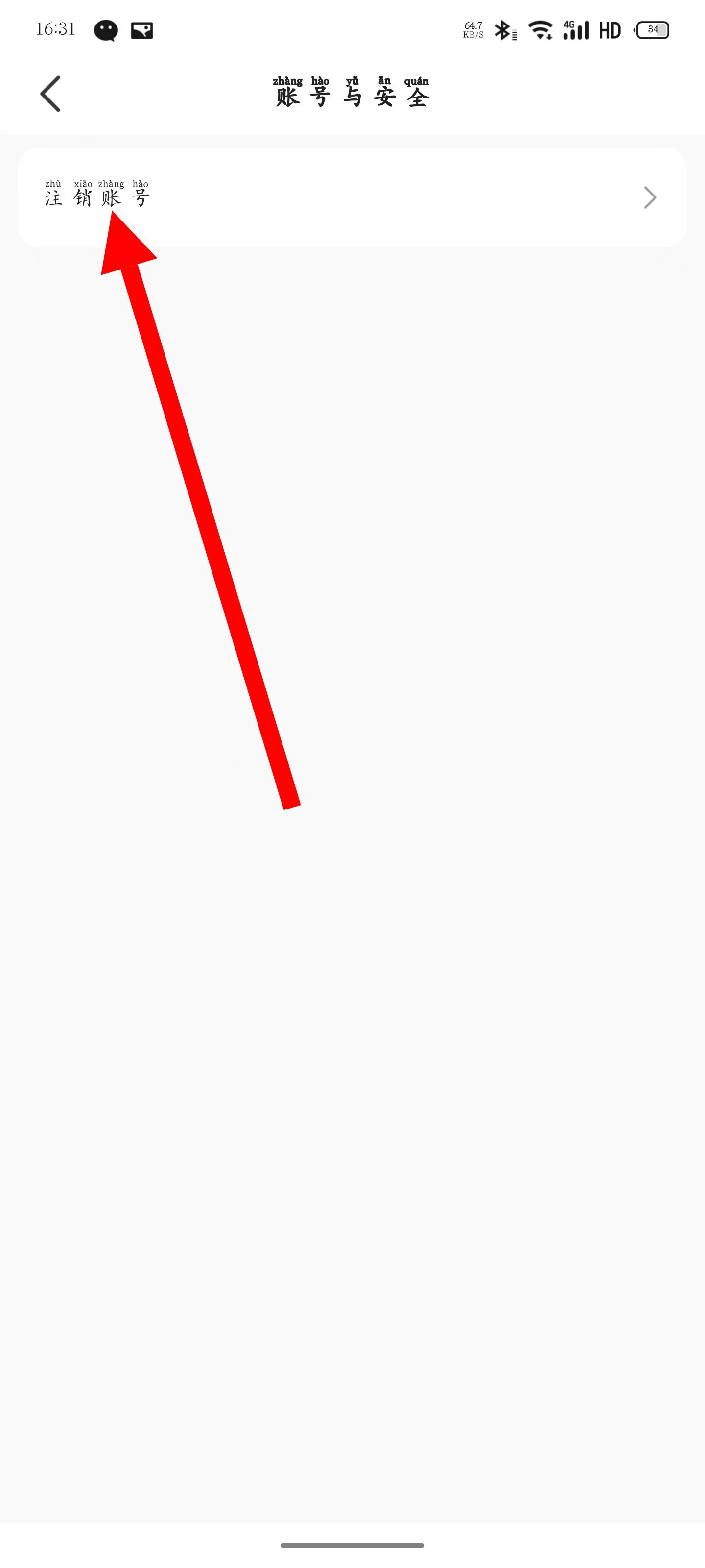 4、进入账号与安全页面,点击“注销账号”选项。