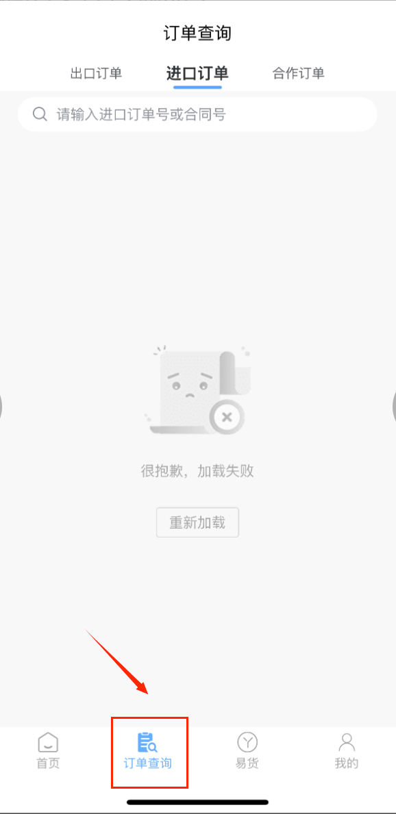 2、在订单管理模块中,可通过输入合同编号或订单号来查询交易记录,系统支持按进出口类型进行分类查看,其详细页面会展示货物状态及物流信息。