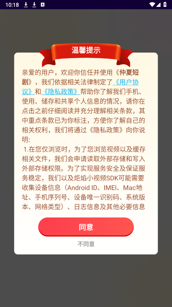 安装仲夏短剧之后打开,同意相关的政策与协议。