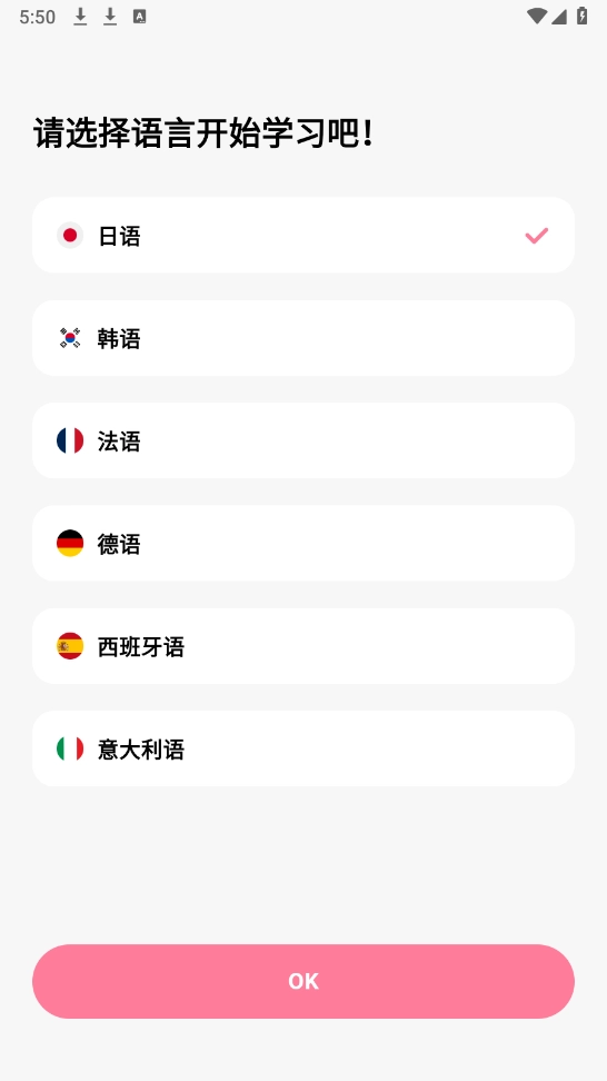 选择想要进行学习的语言,比如小编选择的韩语。