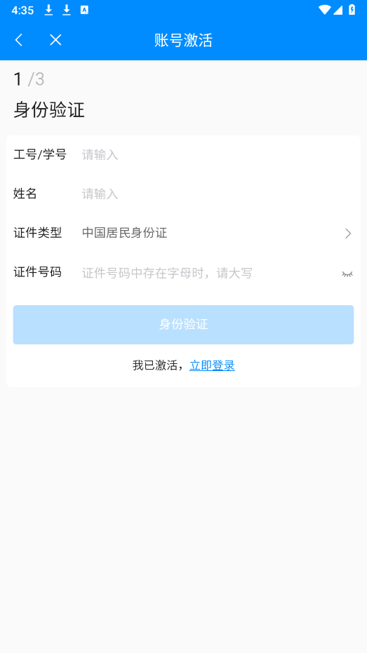 用户登录:可凭个人学号或教工号登录系统,首次登录时需完成身份验证步骤。