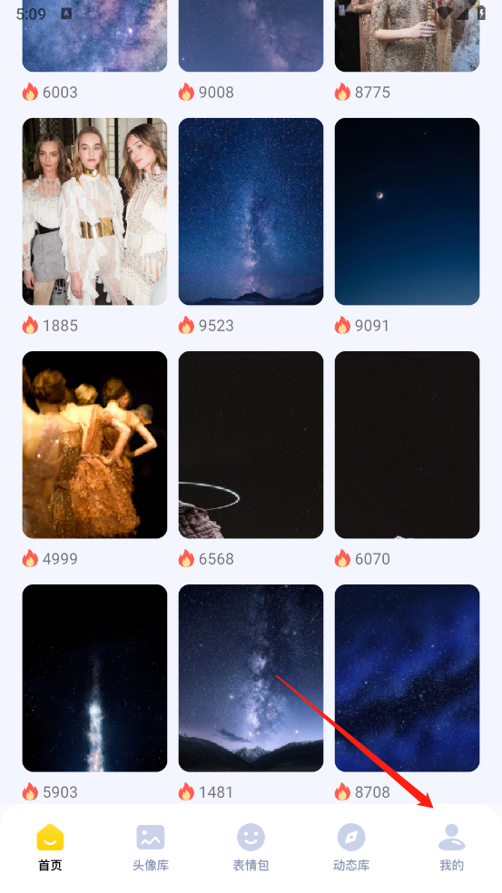 进入之后,底部栏包含多种类型,涵盖壁纸、头像和表情包等内容。