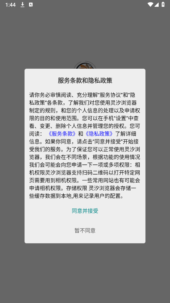 安装最新版的灵汐浏览器,同意相关的政策与协议。