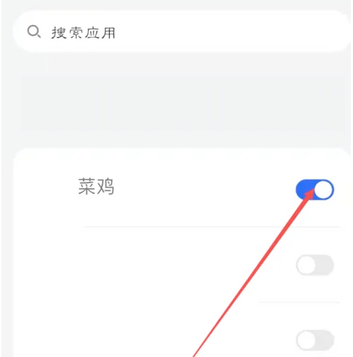 在应用列表找到菜鸡,也可以使用搜索查找,然后点关攀击右边按钮,打开权限即可