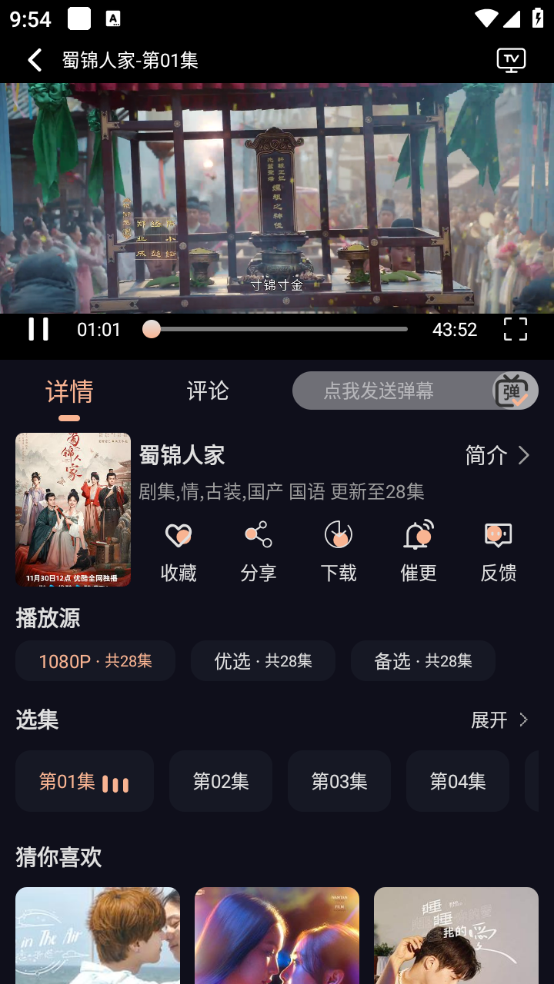 找到想看的影视之后点开,可以选集数、以及收藏等。
