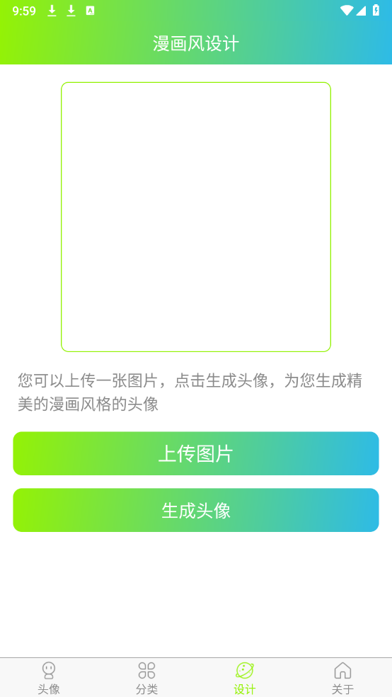 点击“设计”按钮,只需上传一张图片,就能生成漫画风格的头像啦。