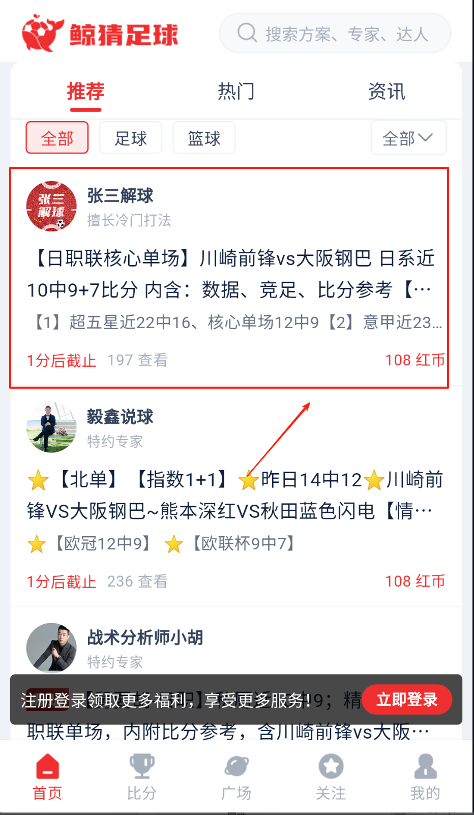 2、专家解析模块汇集职业分析师观点,可参与赛事预测话题互动获取专业建议。