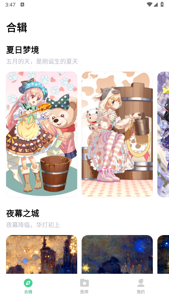 进入首页后,便能看到各类精美的壁纸资源,借助涂色功能还能生成专属于自己的涂色动态壁纸。