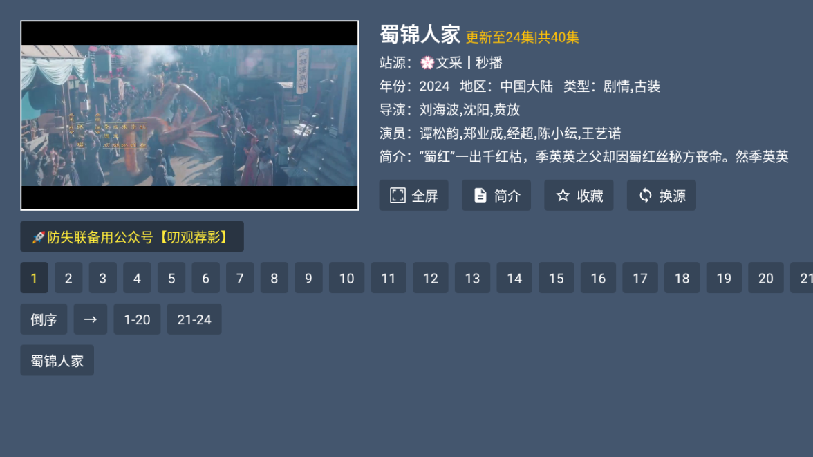 点开想看的影视就进入正片了,可以选择集数、播放源以及收藏。