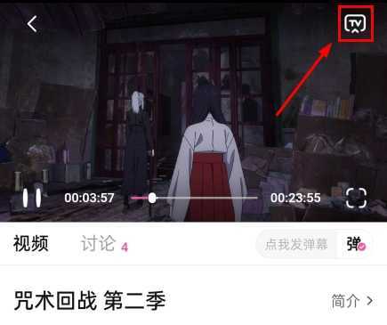 待播放界面的右上角设有投屏按钮,点击该按钮就能启用投屏功能。
