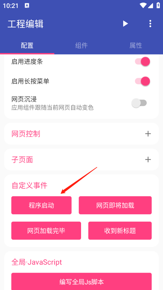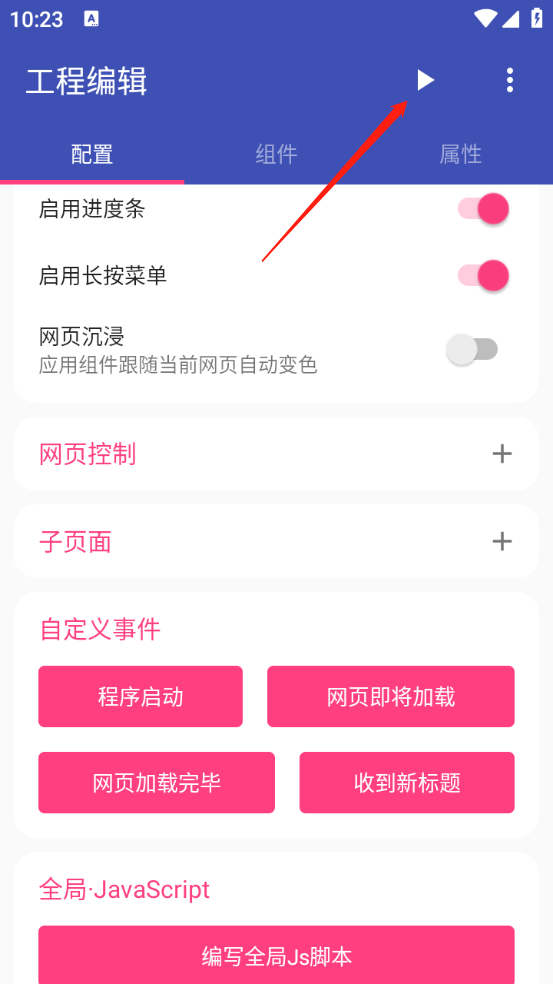回到【工程编辑】页面,点击右上角的三角按钮,即可预览启动效果。