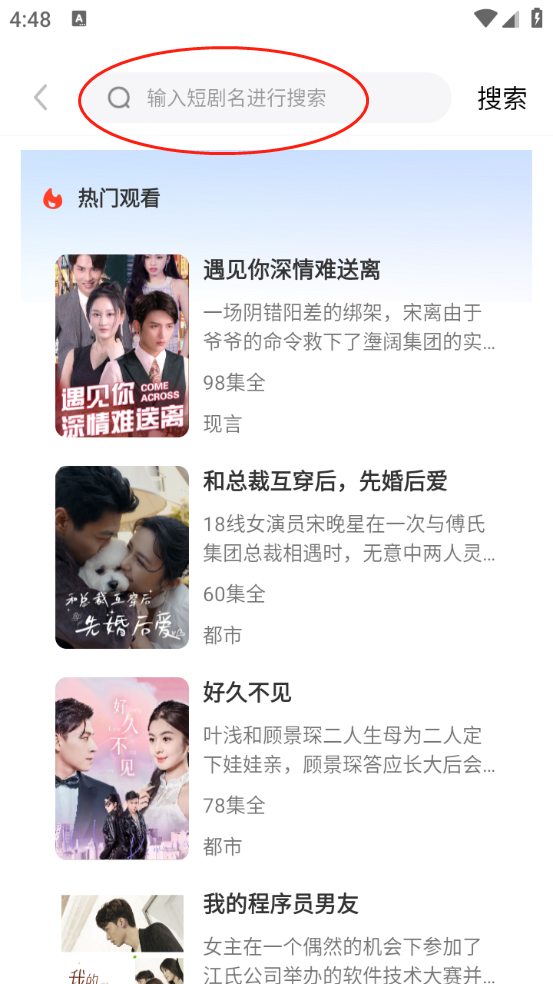 持续扩充短剧资源库,时下热门且播放流畅的内容应有尽有,您想观看的短剧都能轻松找到。