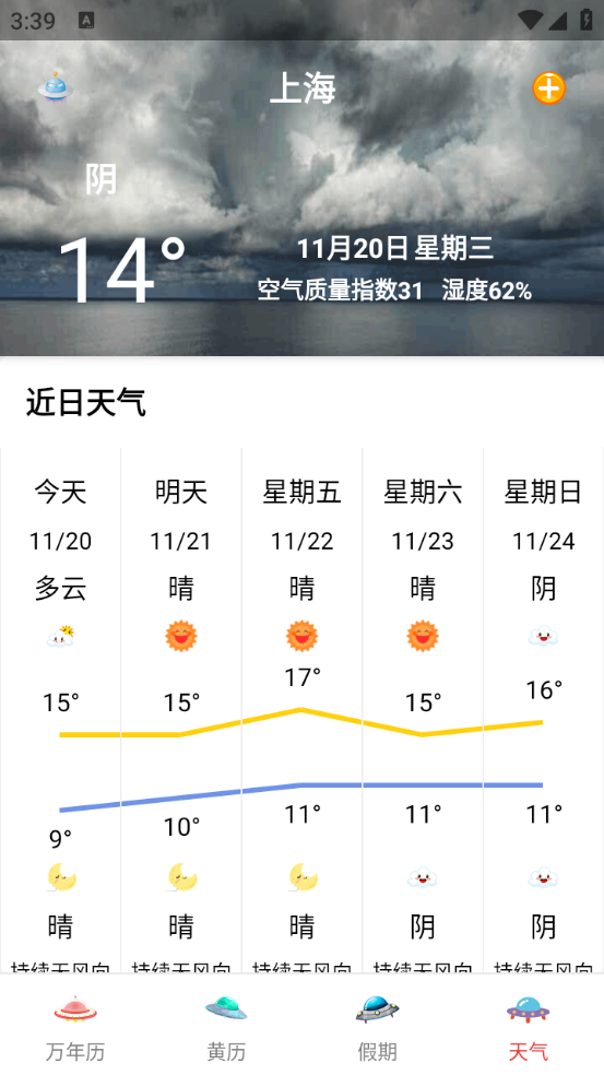 为您提供未来一周的天气预告和穿衣建议,助您出门时兼顾温度与风度。