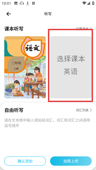 4、选定课本后点【确认添加】按钮,就能生成对应课本的听写内容,开始听写练习啦。