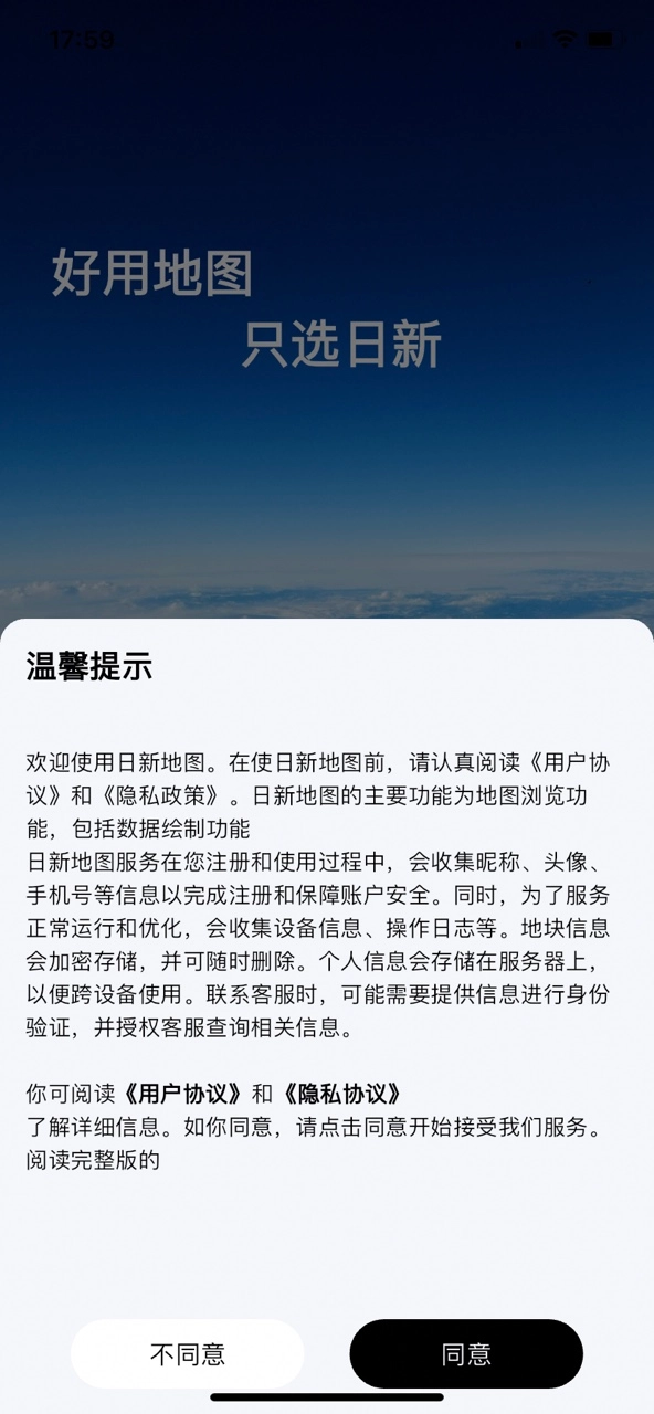 打开日新地图,点击同意相关协议