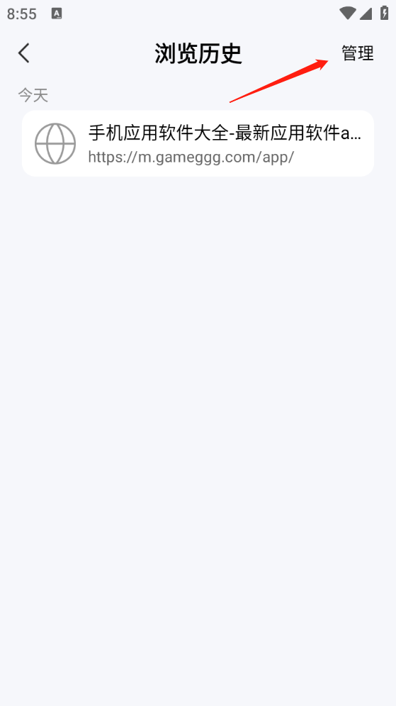 就会出现全部的历史记录了,点击右上角的“管理”。
