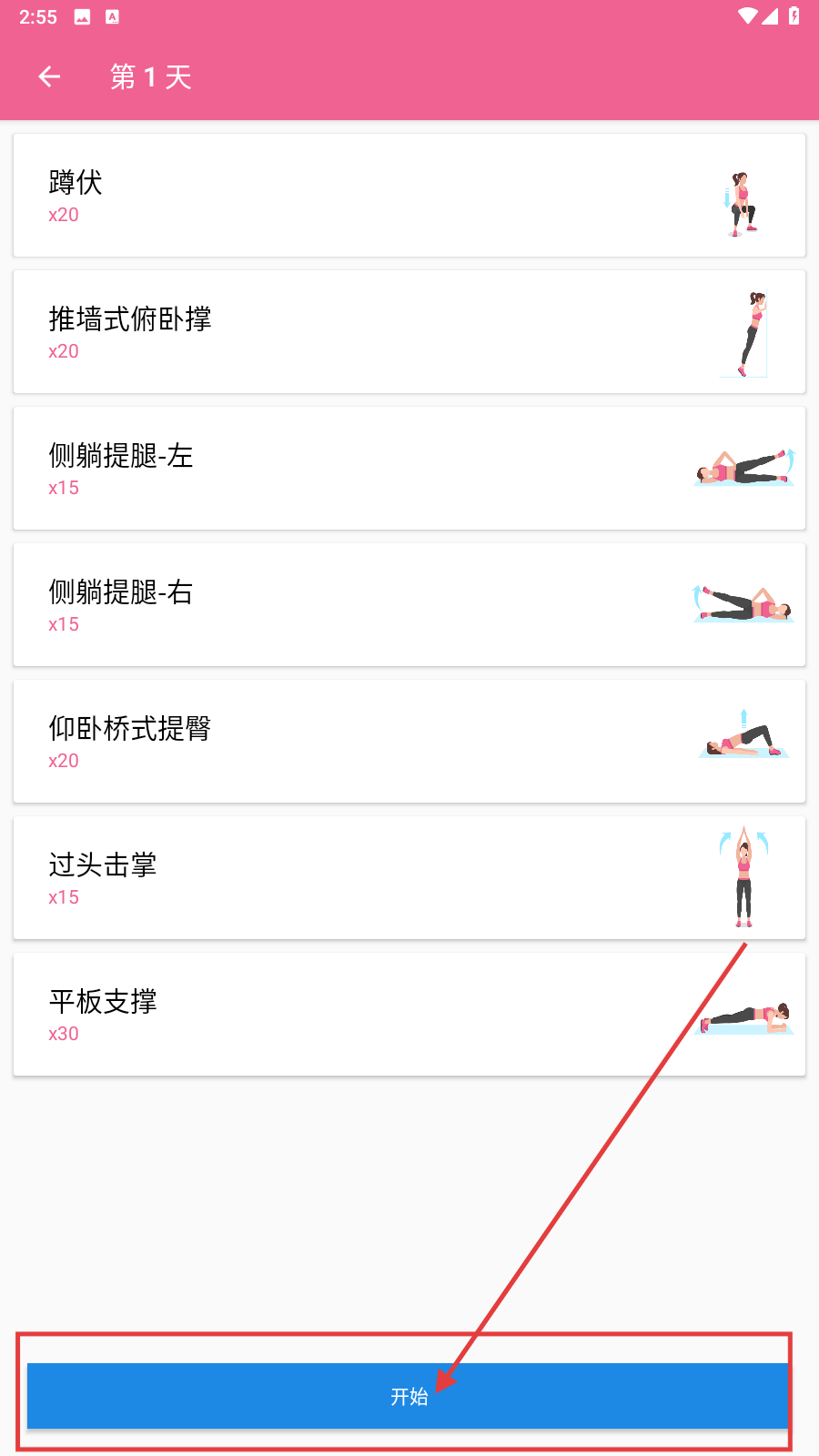 是一款专注于健康减肥与科学健身的移动应用,依托智能算法与专业教练团队,构建了集课程训练、饮食管理、数据追踪于一体的全链路服务生态。该应用通过个性化减肥方案与实时数据反馈,帮助用户在健康的前提下实现高效瘦身,日均活跃用户超20万,成为减肥人群的首选工具。1、打开应用,点击【第1天】。